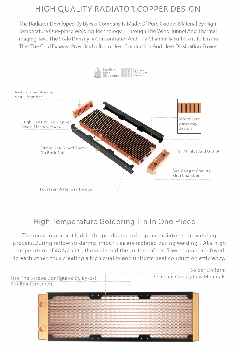 Охлаждающий радиатор для ПК Bykski G14 дюйма, 30 мм, толщина 12 см, 360 мм