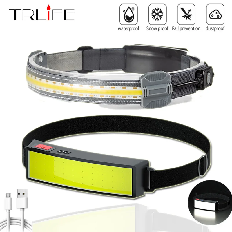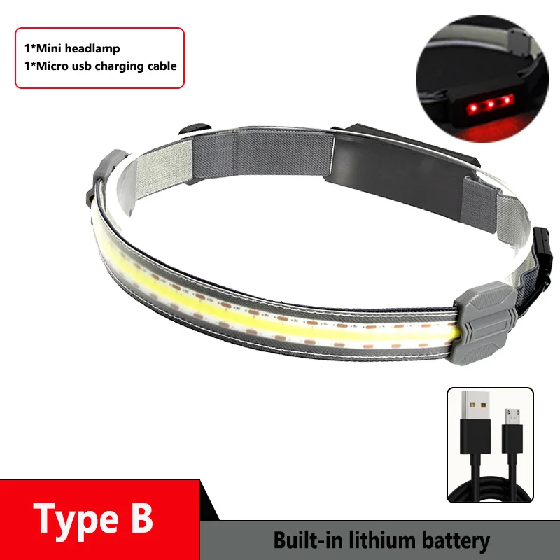 Новинка 2021, стильный налобный фонарь, портативный светодиодный мини-фонарь COB со встроенным аккумулятором, фонарик с USB-зарядкой, налобный фонарь для походов