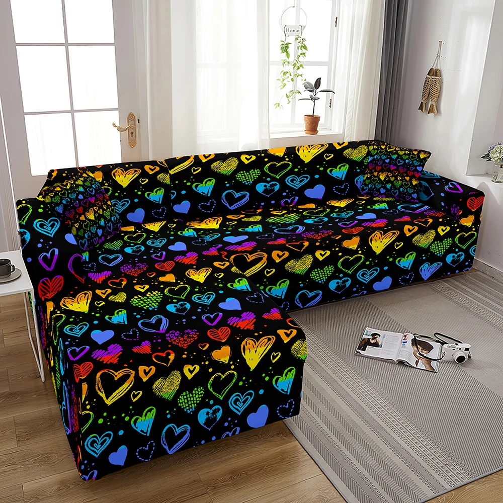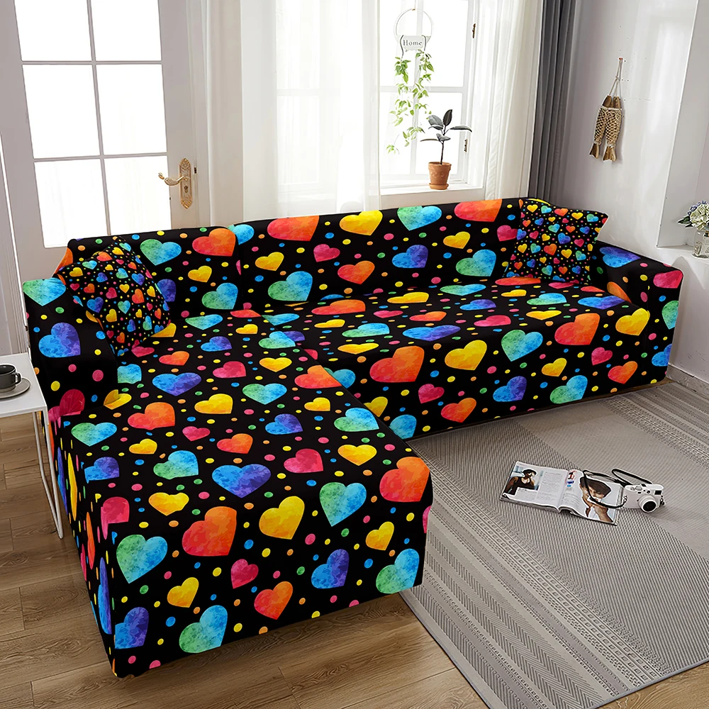 Разноцветное сердце любовь Чехлы для угловых диванов с принтом для ...