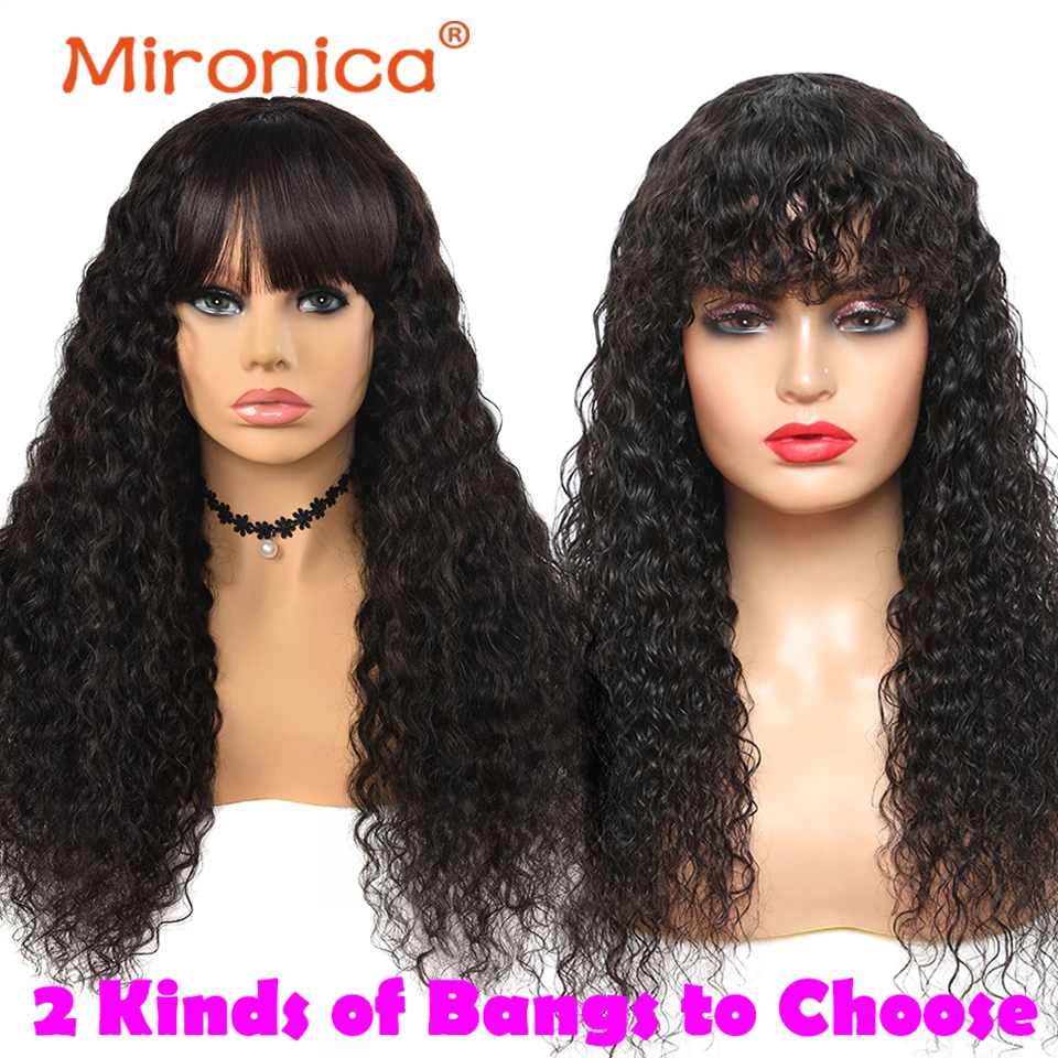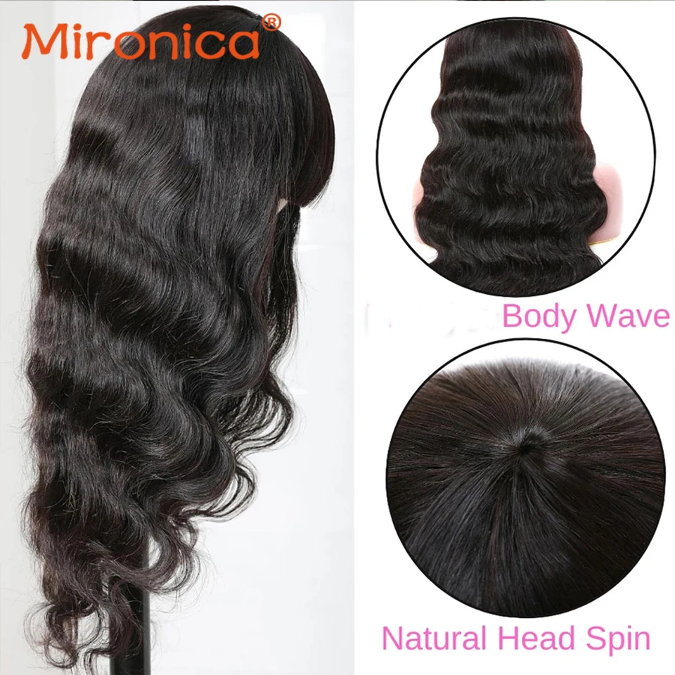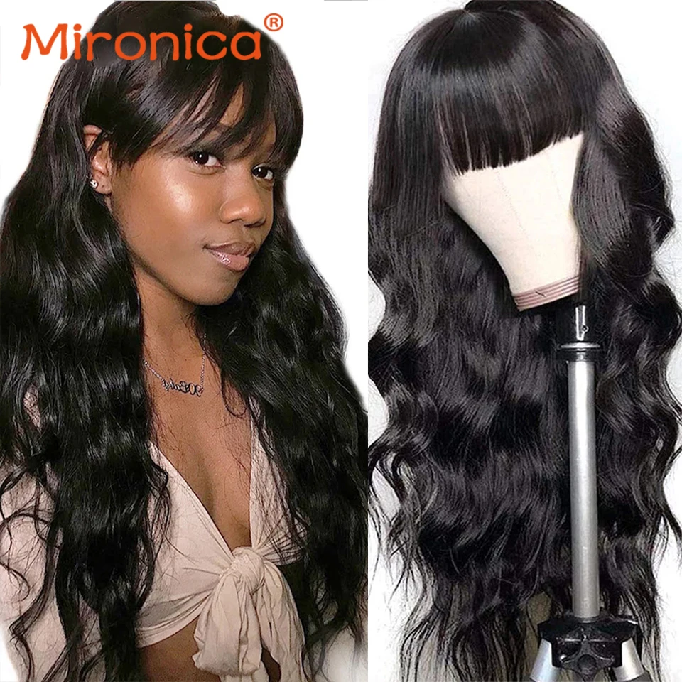 Mironica, волосы, свободные, волнистые, человеческие волосы, парик с челкой, полностью машинное изготовление, Remy, бразильские волосы, прямые человеческие волосы, парик для женщин