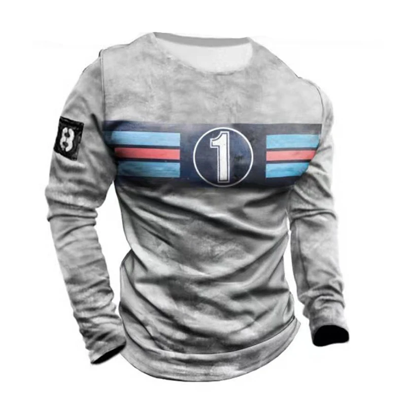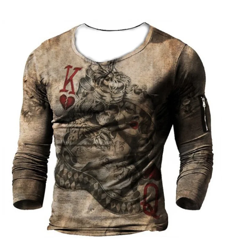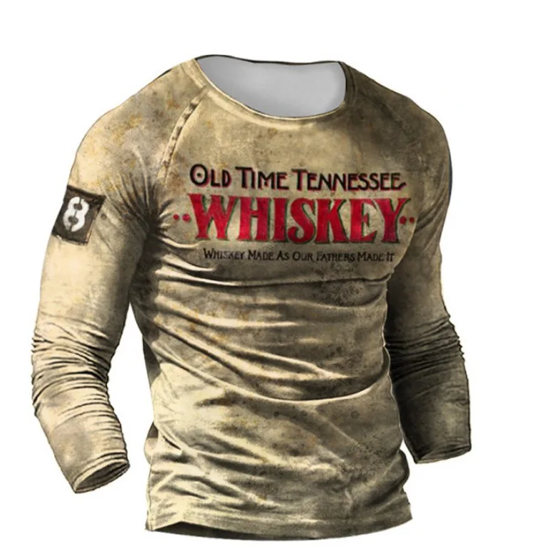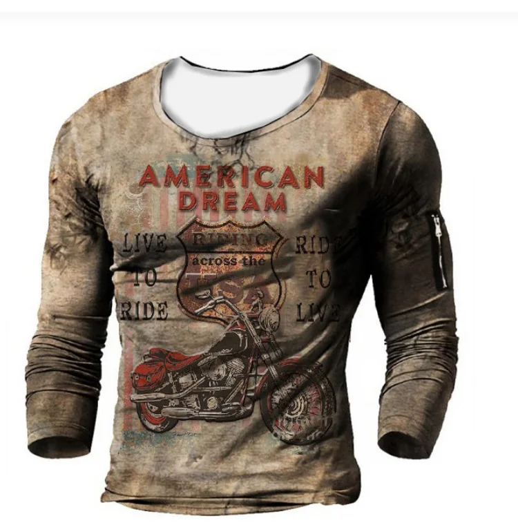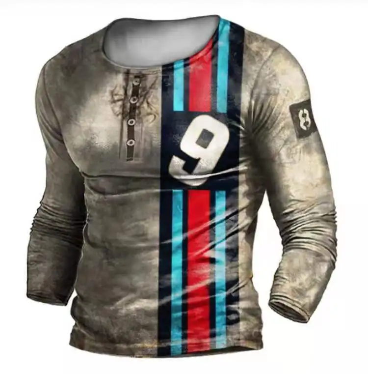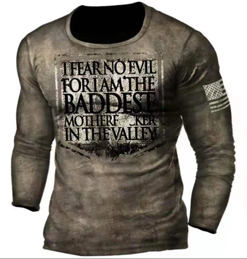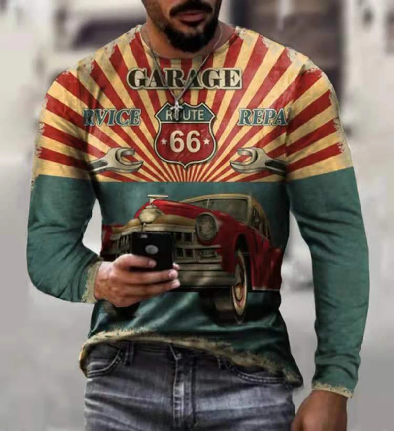 Футболка мужская оверсайз с длинным рукавом, свободная Модная рубашка с принтом 66 букв, топ в винтажном стиле, весна-осень