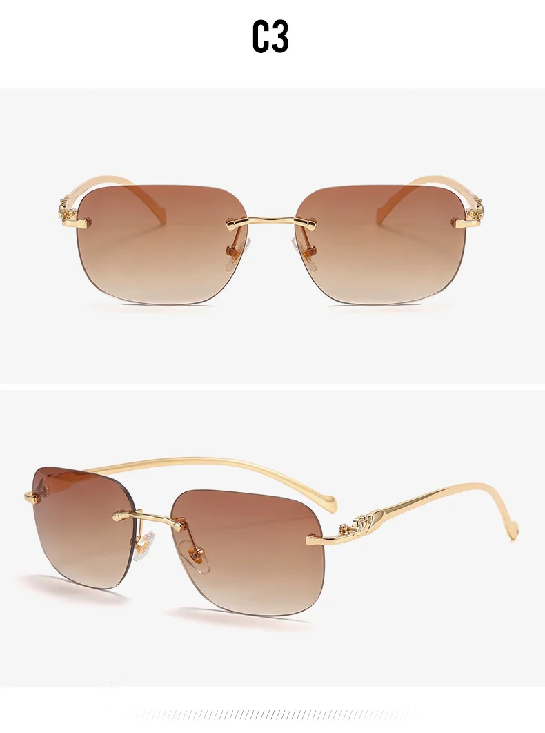Солнцезащитные очки без оправы с украшением гепарда, квадратные цве...
