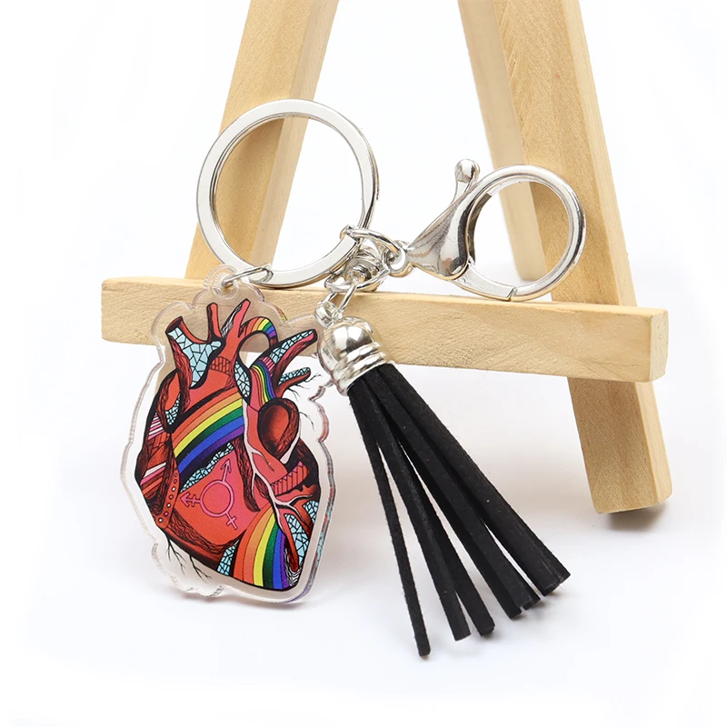 ЛГБТ флаг Радуга Сердце акриловая кисточка брелок для геев гордость...