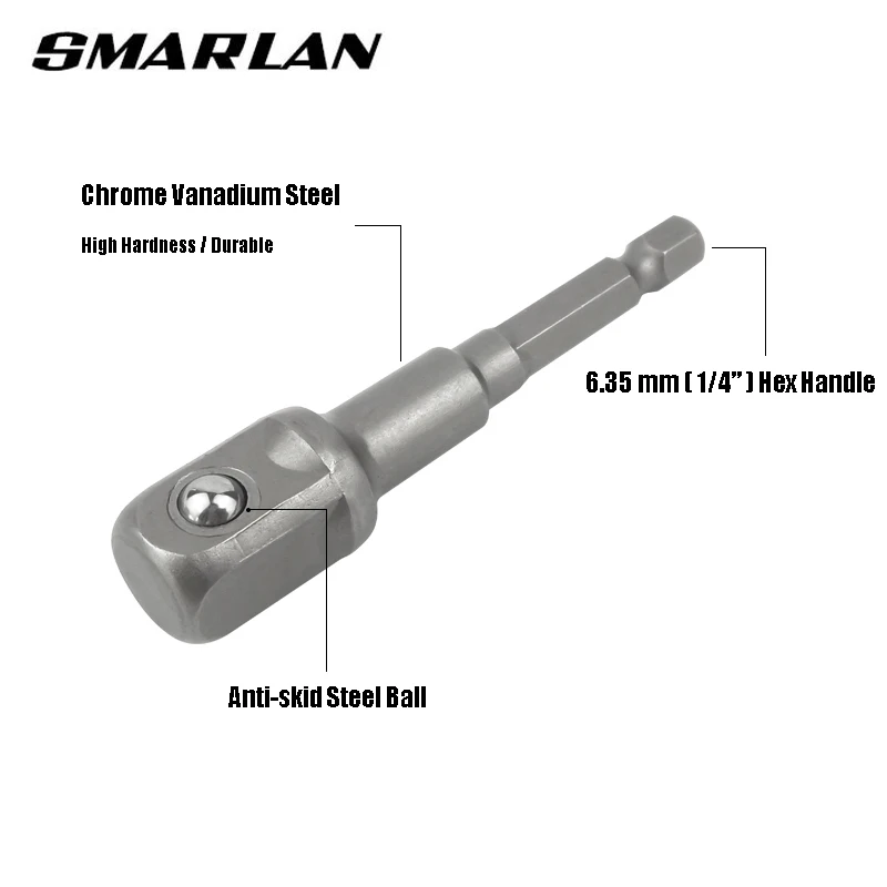 Особенности:1. Стопорный шар из нержавеющей стали обеспечивает надежную фиксацию2. Розетки плотно защелкиваются и не соскальзывают с 1/4 дюйма3. Шестигранный хвостовик предотвращает зачистку при работе с высокоскоростным сверлом4. Сверхпрочная Термообработанная хромованадиевая сталь для нормального и ударопрочного воздействия5. Пескоструйная обработка6. Преобразует дрели в быстрые розетки7. Применяется к ручке отвертки или инструментам электрической отвертки (может быть шестигранное отверстие или патрон с тремя кулачками)8. Используется приводная втулка, может быть оригинальной шестигранной стороной после установки в квадратный размер, что используется для установки втулки, является хорошим аксессуаром для преобразованияСпецификация:Материал: хромованадиевая сталь cr-vРазмер: (прибл.)Хвостовик 1/4x1/4x50 мм-1/4 дюйма может быть преобразован в квадрат 6,35 ммХвостовик 3/8x1/4x50 мм-1/4 дюйма может быть преобразован в квадрат 9,53 ммХвостовик 1/2x1/4x50 мм-1/4 дюйма может быть преобразован в квадрат 12,7 ммЦвет: как показано на рисунке
