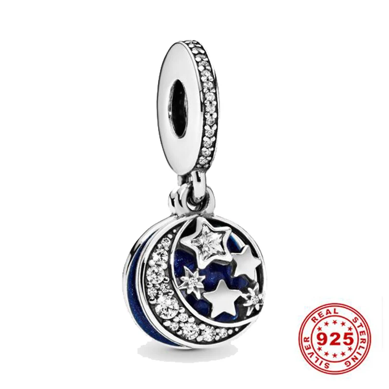 Новые искусственные синие Сверкающие Звезды Луна Сова циркониевые шармы подходят для оригинального браслета Pandora Diy Изготовление ювелирных изделий