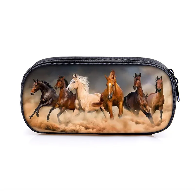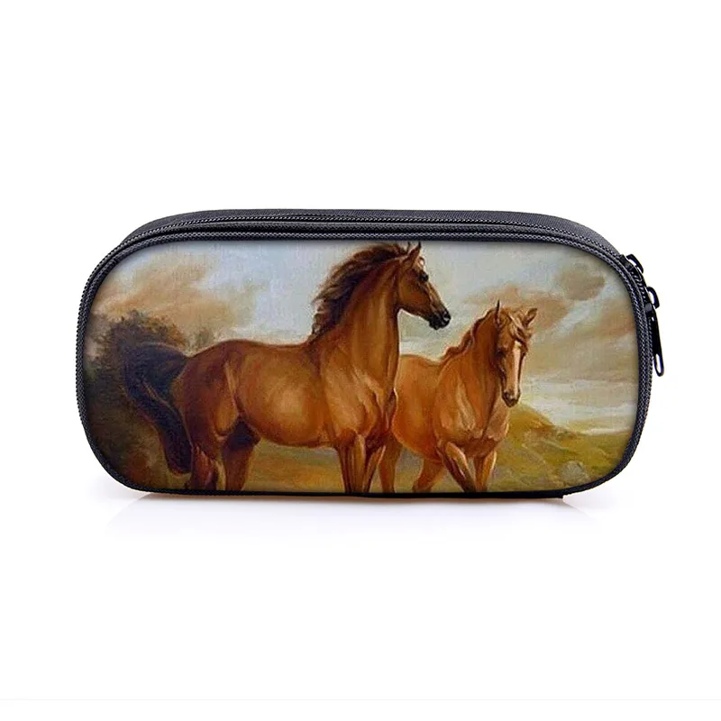 Косметичка с животным принтом лошади, женские сумки-карандаши для девушек, студенческие канцелярские сумки для хранения, женские портативные сумки-карандаши, подарок