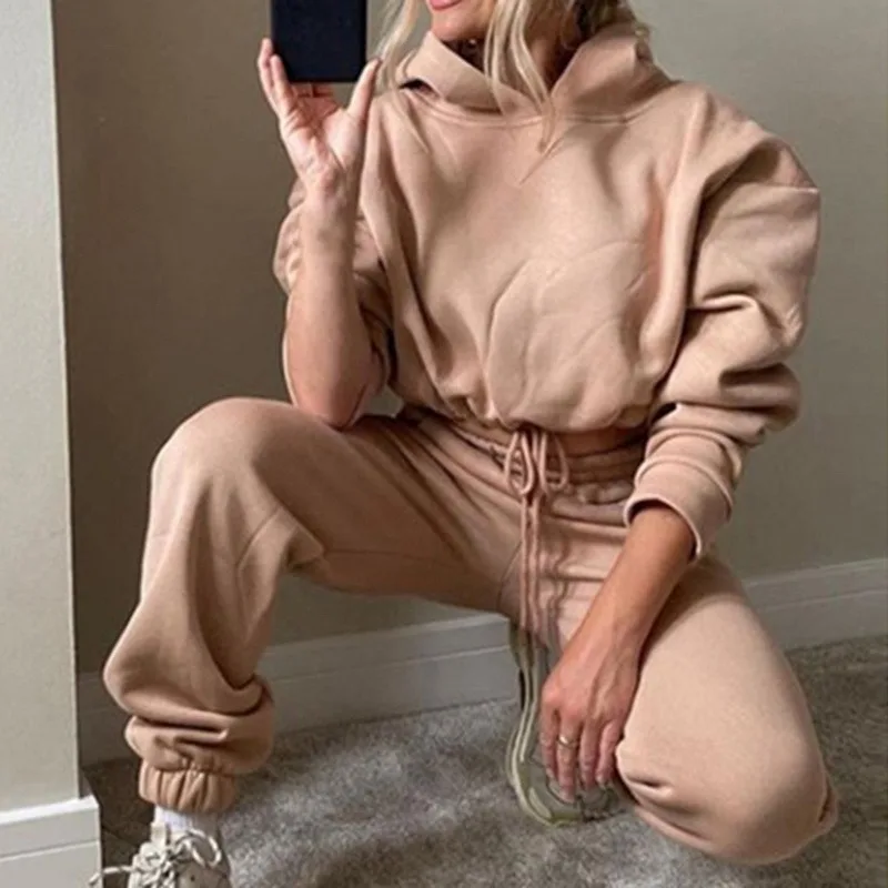 Solid Casual TracksuitWomen Sports 2 Pieces Set