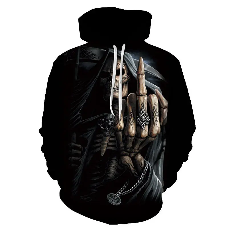 Толстовка мужская с 3D-принтом черепа, черная уличная одежда, пулов...