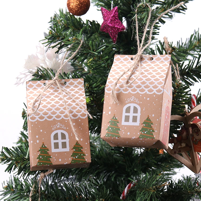 10 шт. Рождественский домик, форма, конфетные пакеты, рождественский подарок, коробка для печенья, упаковка, коробки, Рождественская елка, подвесные вечерние украшения