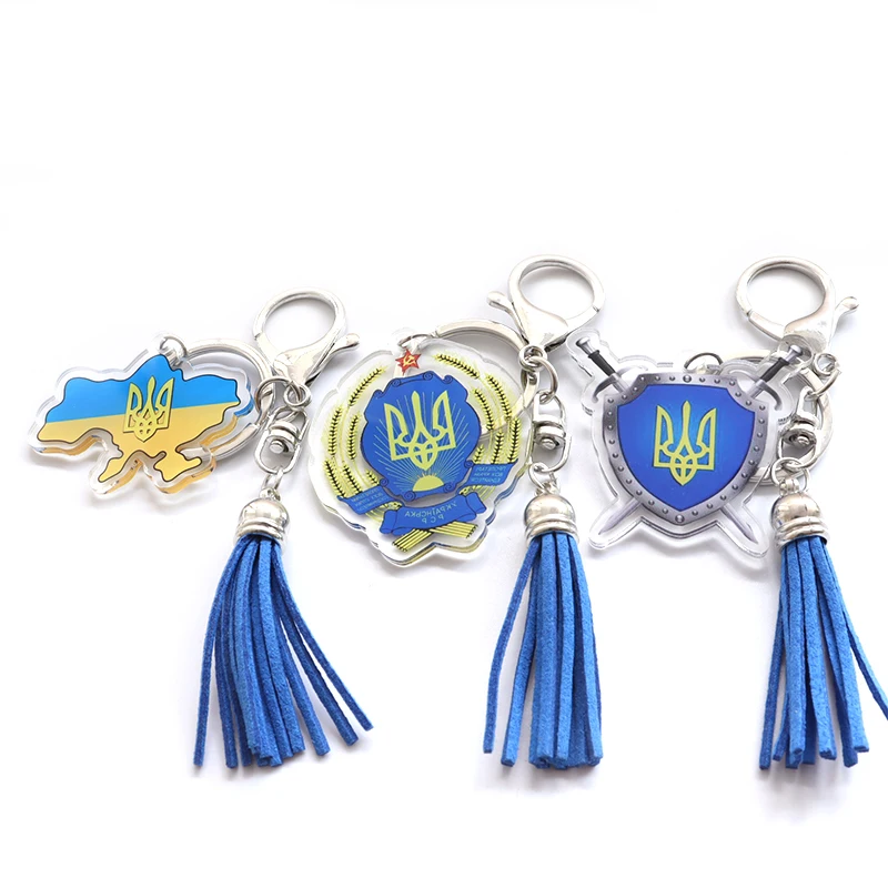 Брелок Tryzub в украинском стиле, украшение для мужчин и женщин, с рисунком руны, с кисточкой, акриловым тройным винтажным дизайном, Ювелирное Украшение в подарок