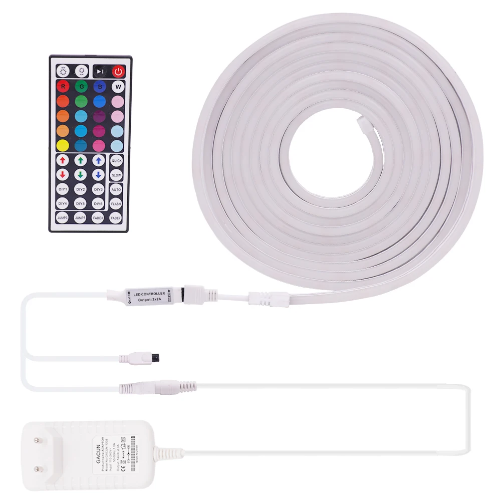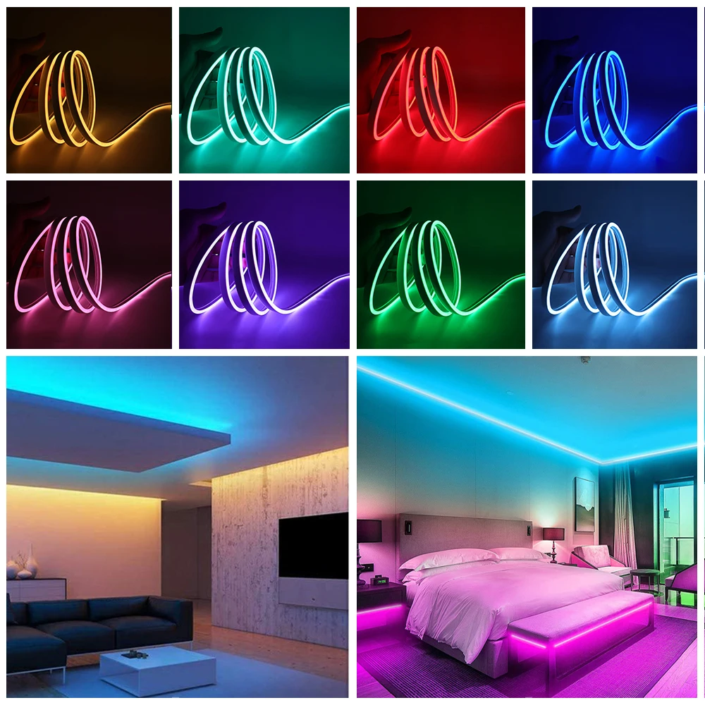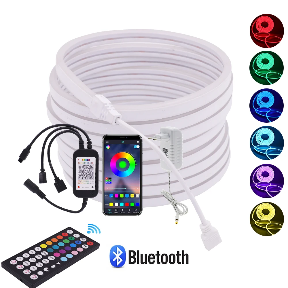 Гибсветодиодный неоновая Светодиодная лента RGB 12 в, гибсветодиодный Водонепроницаемая LED полоска с поддержкой Bluetooth и дистанционным управлением через приложение