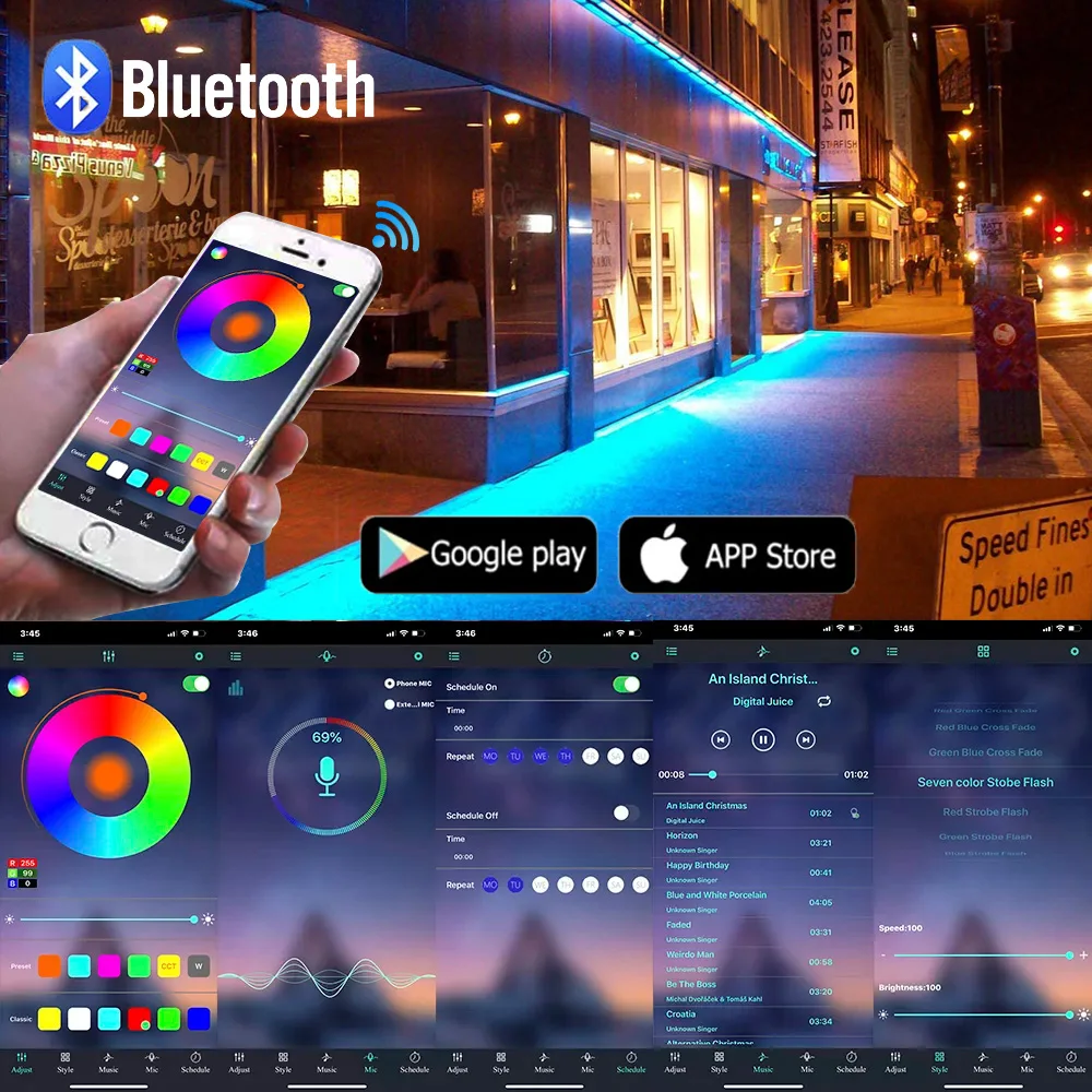 Управление;: 44Key инфракрасный Управление;/Bluetooth APP, может Управление вкл/выкл, светильник цвет, яркость, светильник ing режим, Функция синхронизации, bluetooth Синхронизация музыки, функция памяти и т. д.