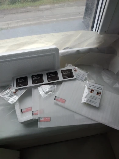 Посылка: 4 передних стекла + 4 чистящих комплекта