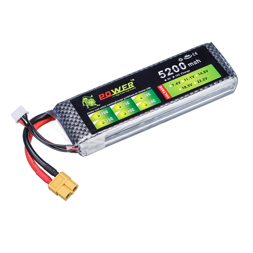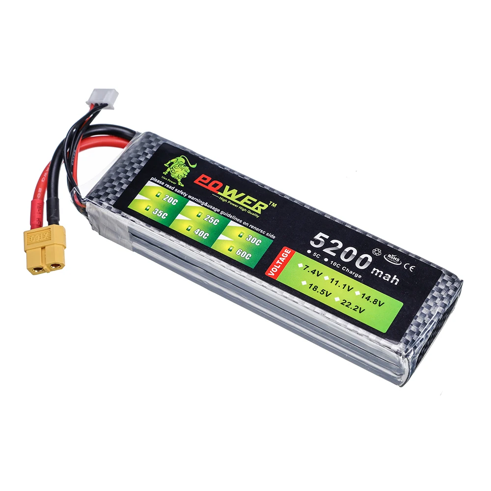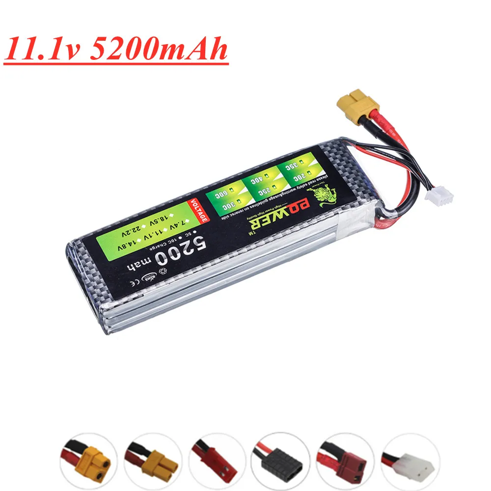 Литиевый аккумулятор Lion Power 11,1 В, 5200 мА ч, штекер 30C TXT60 для радиоуправляемых дронов, вертолетов, лодок, самолетов, 5200 мА ч, 3s, 11,1 В