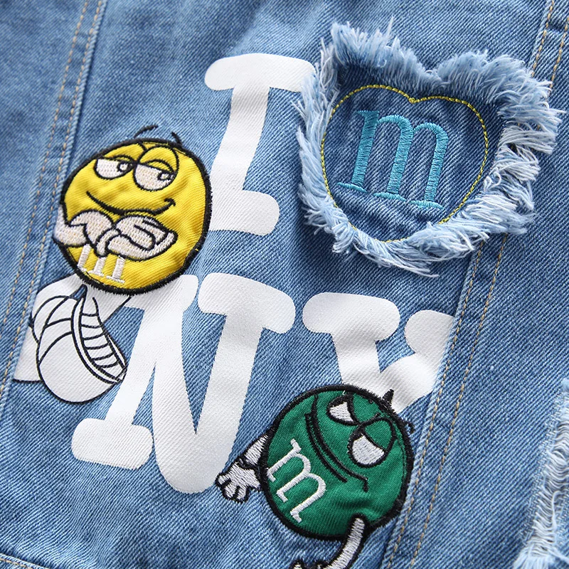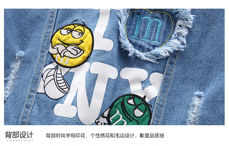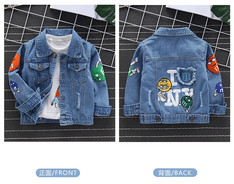 Детские джинсовые куртки для мальчиков, джинсовые куртки с мультяшным принтом M, синяя детская одежда для девочек, осень-весна