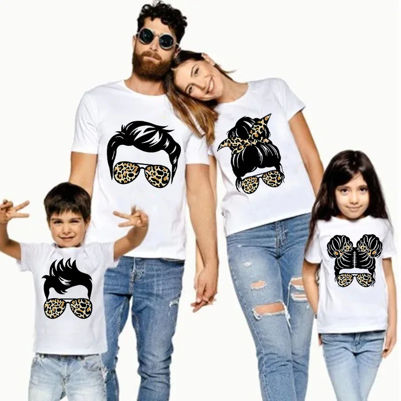 Футболка с леопардовым принтом, для мамы, папы, дочки, сына