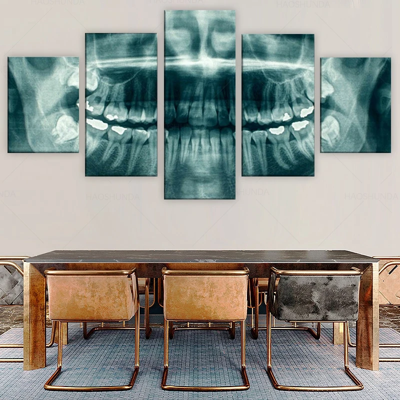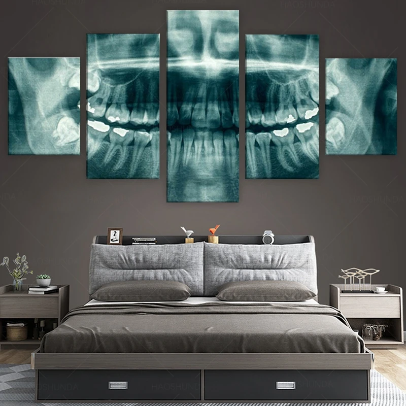 Настенные художественные картины, домашний декор, современные HD-принты, холст, 5 панелей, стоматологические зубы, рентгеновский рисунок, медицинский плакат, рамка