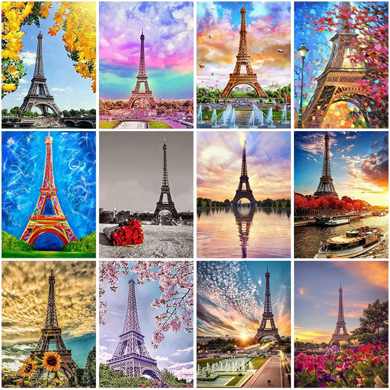 5D алмазная живопись, пейзаж, вышивка крестиком, Эйфелева башня, полная круглая Алмазная вышивка, распродажа, украшение для дома