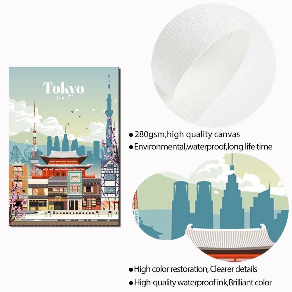 Известный город путешествия плакат мультфильм Лондон Нью-Йорк Париж Токийский пейзаж холст живопись настенные художественные фотографии для декора гостиной