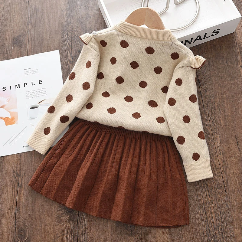Комплект вязаный из Свитера и юбки, для девочек, зимний