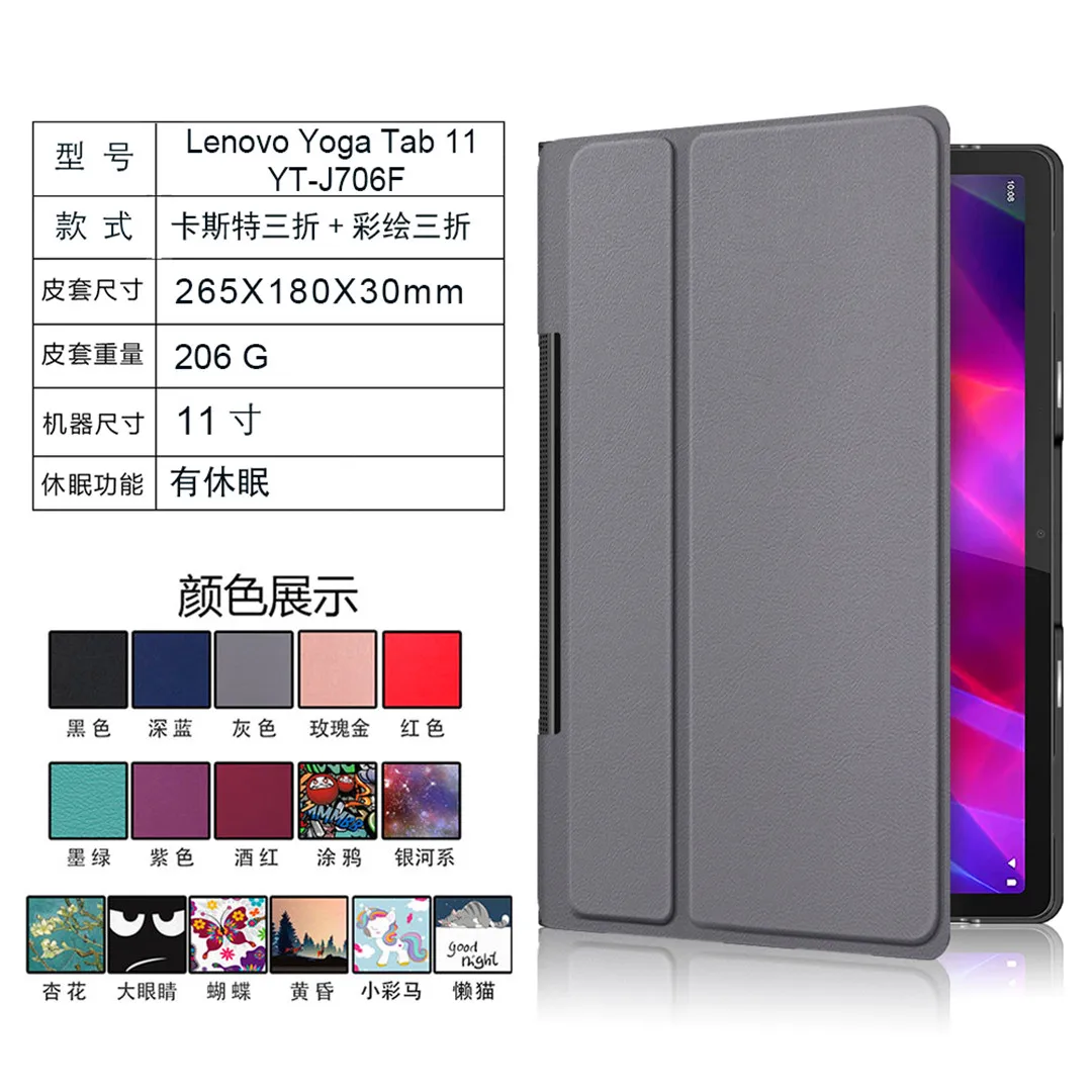 Чехол для Lenovo Yoga Tab 11 флип-чехол из искусственной кожи с рисунком для Lenovo Yoga Tab 11 2021 YT J706F умный чехол для планшета + ручка