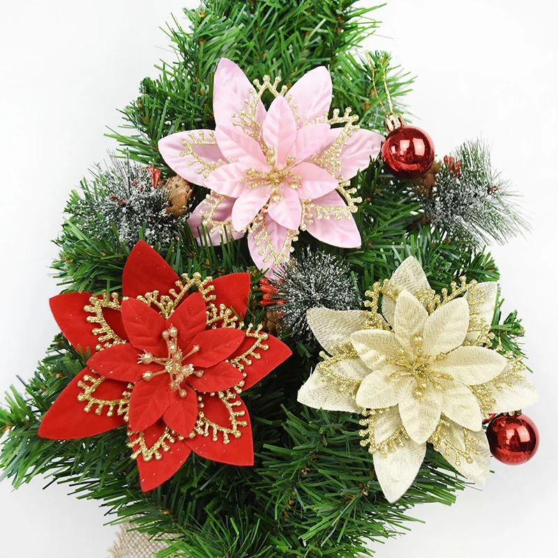 5 шт.лот блестящие рождественские Пуансетии искусственные цветочные...