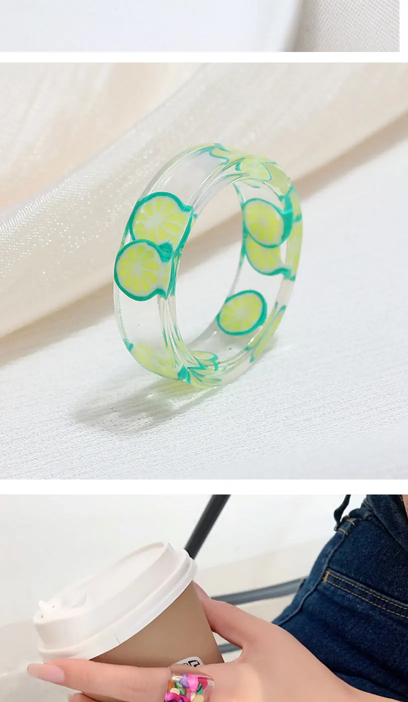 Кольцо из смолы с листьями фруктов, набор модных колец в Корейском ...