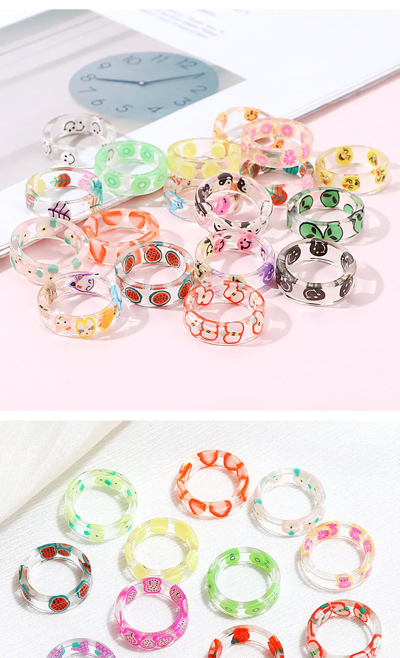 Красочное прозрачное акриловое кольцо из смолы для женщин, корейское креативное геометрическое квадратное круглое искусственное ювелирное изделие 2021