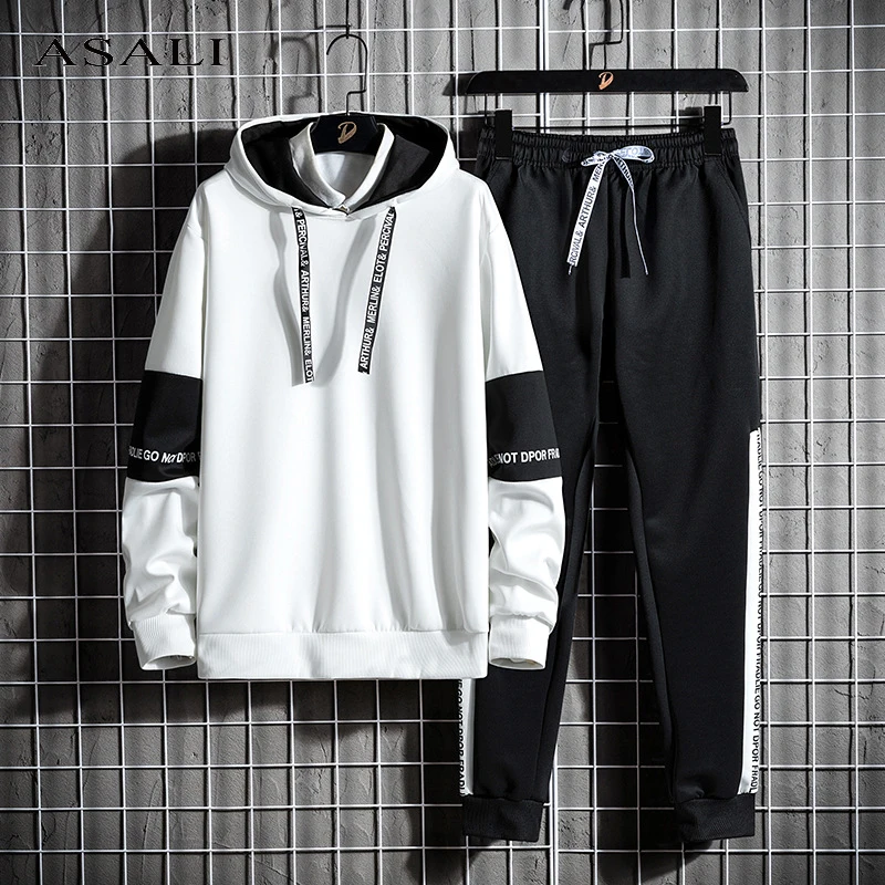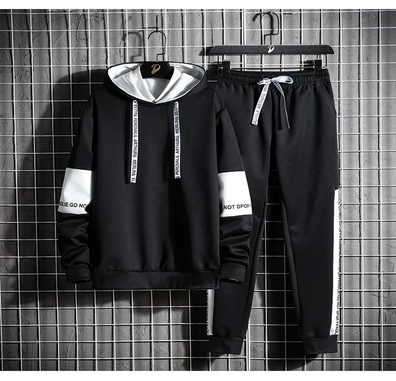Костюм спортивный мужской из 2 предметов, кофта с капюшоном и брюки, повседневная спортивная одежда, стиль пэчворк, Осень-зима