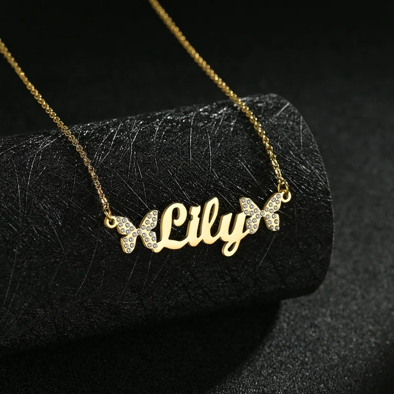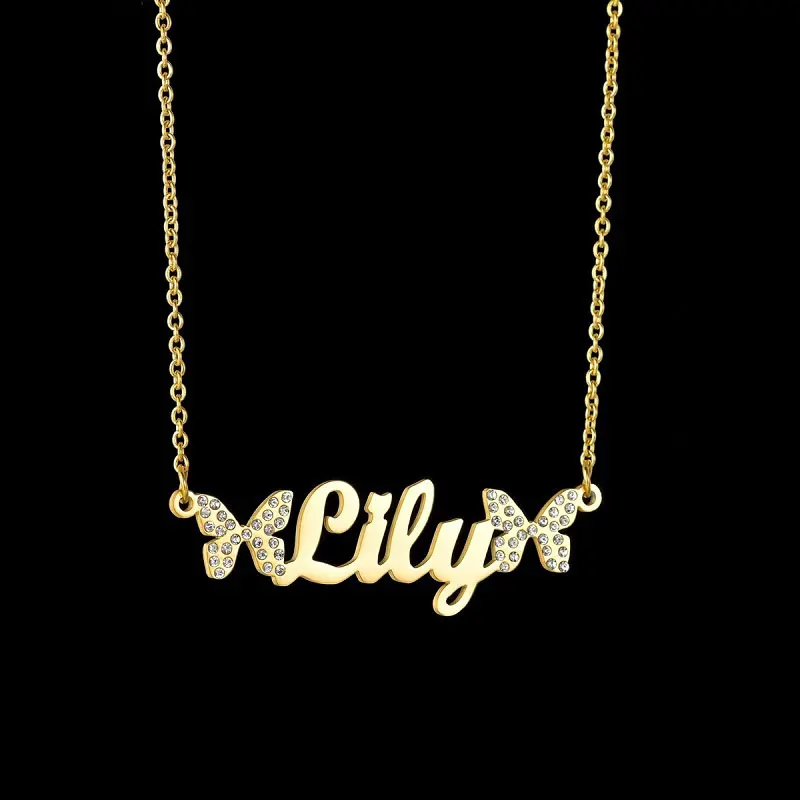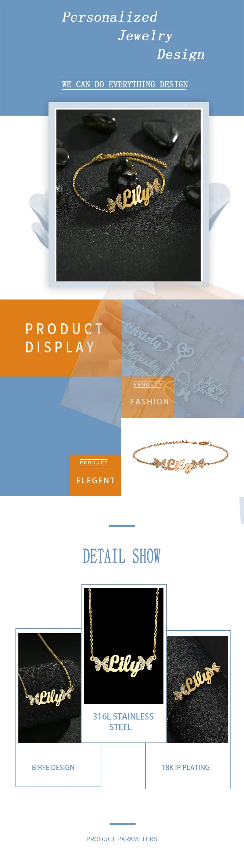 Ожерелье и браслет из нержавеющей стали с персонализированным именем бриллианта бабочки кулон с буквами на заказ для женщин мужчин ювелирные изделия на день рождения подарки