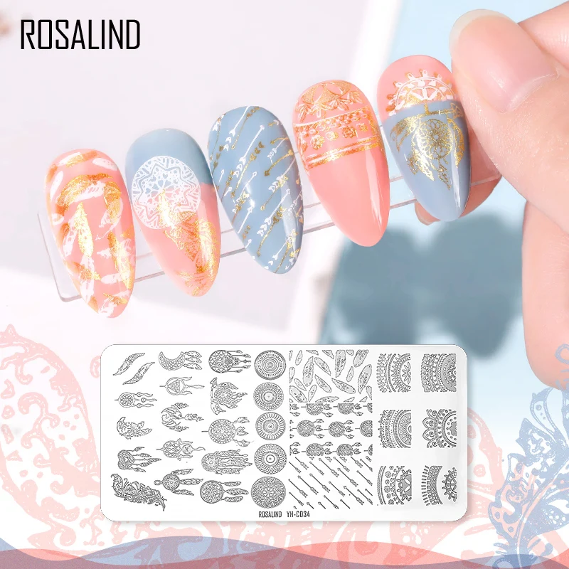 ROSALIND Nail Nail штамповочная пластина для ногтей Минималистичная линия печатная форма для ногтей DIY Nail Art Печать в виде цветка