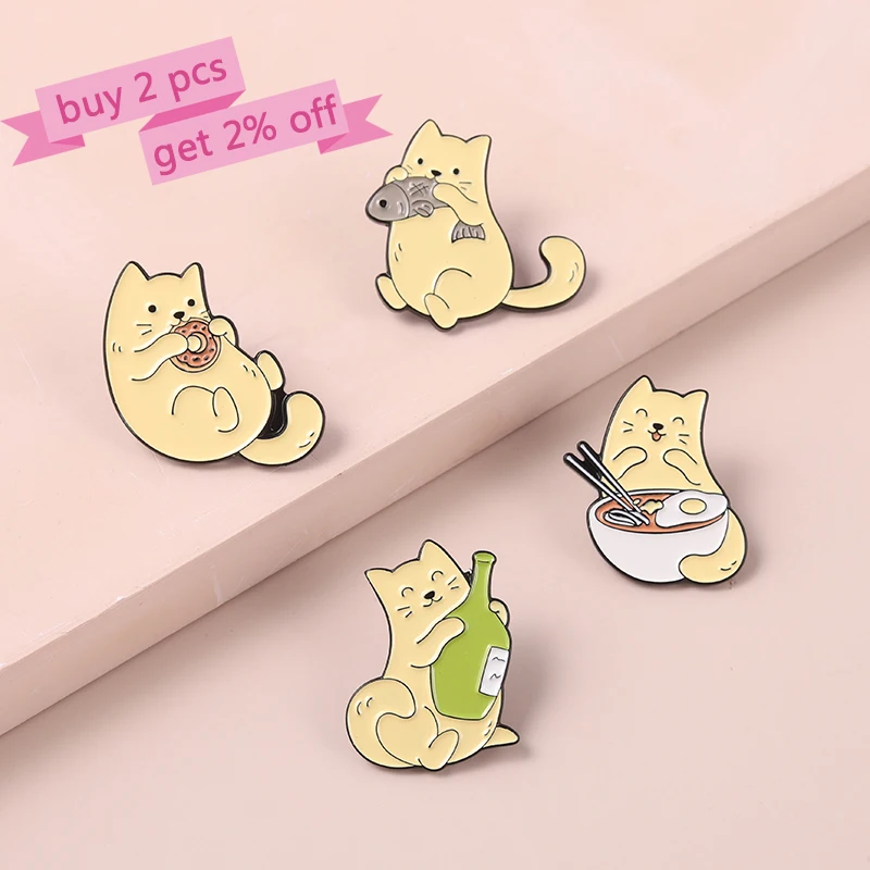Эмалированные булавки для кошек и рыб, пища для кошек, пончиков, лапши, значок, милые пуговицы, аксессуары, подарки для любимых животных, кошек