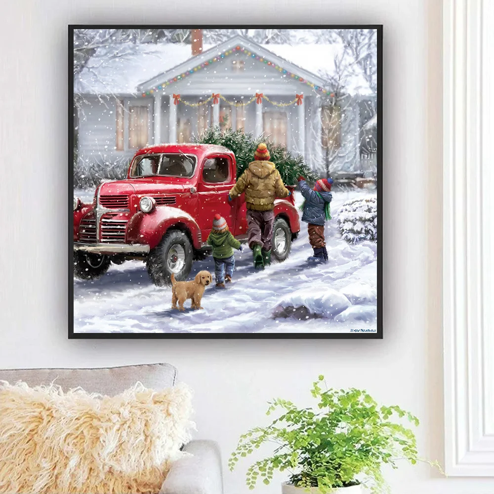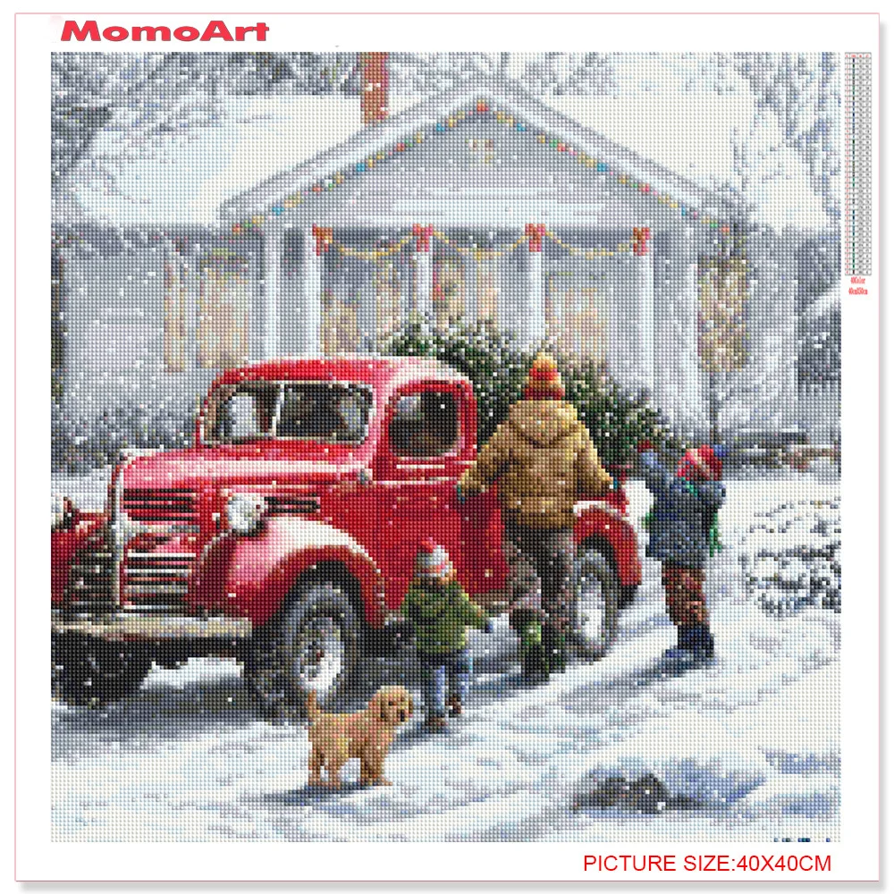 MomoArt алмазная живопись, автомобиль, вышивка крестиком, Женская Вышивка, зимний домашний декор