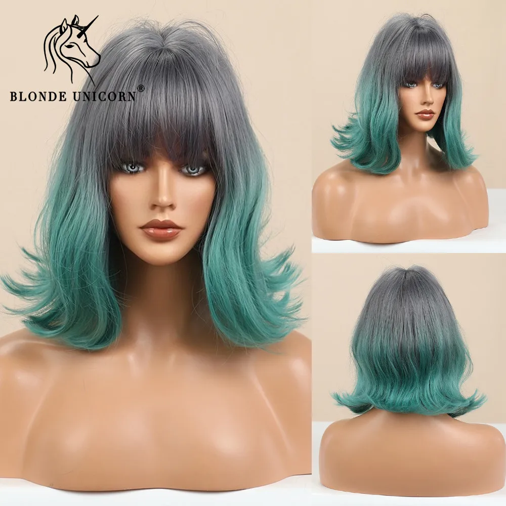 Синтетические парики средней длины блонд единорог с челкой парик из...
