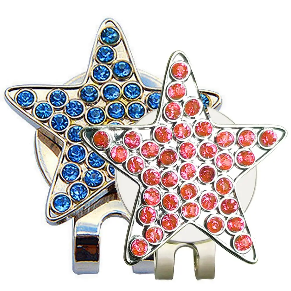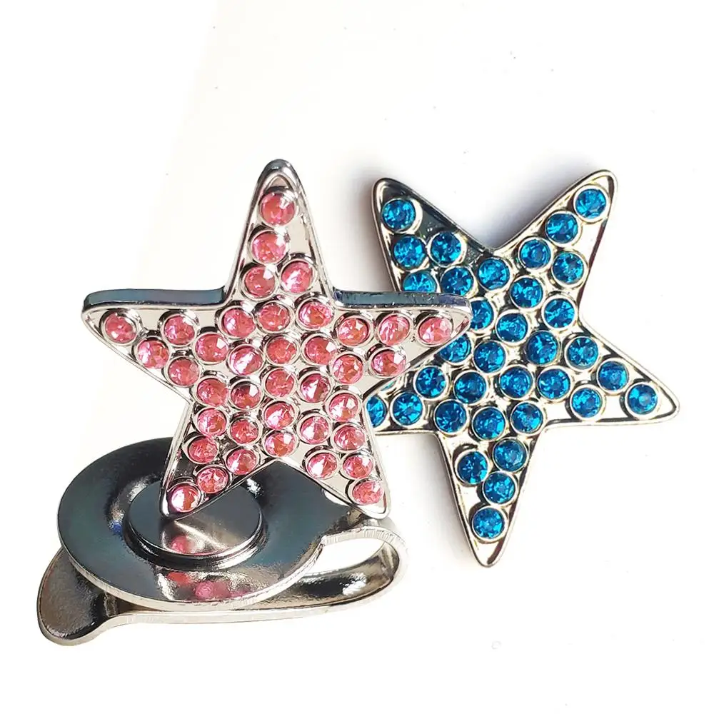 Маркер для мяча для гольфа, 5 звезд, острый, новый стиль, аксессуары для гольфа с розовыми, синими бриллиантами стразы, магнитный зажим для шляпы для девушки, подруги