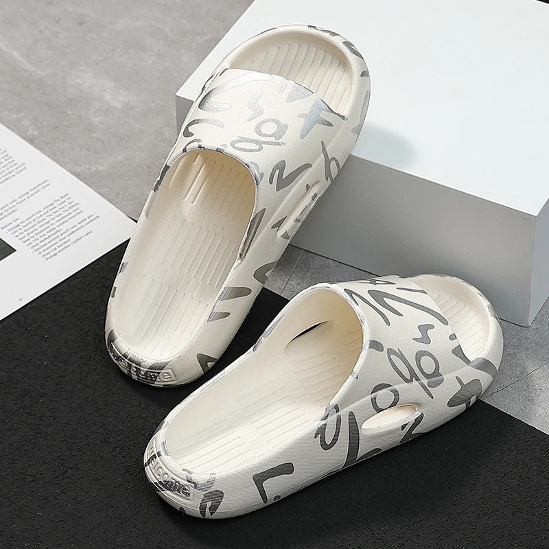 Шлепанцы мягкие для мужчин и женщин, Нескользящие сандалии на толстой подошве, пляжные тапочки, с принтом граффити, летняя обувь