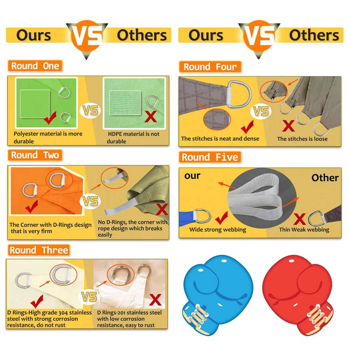 4. Пожалуйста, установите парус в определенном наклоне, таким образом, чтобы он позволял сильному дождю или снегу сбегать, а также сделать парус более привлекательным.