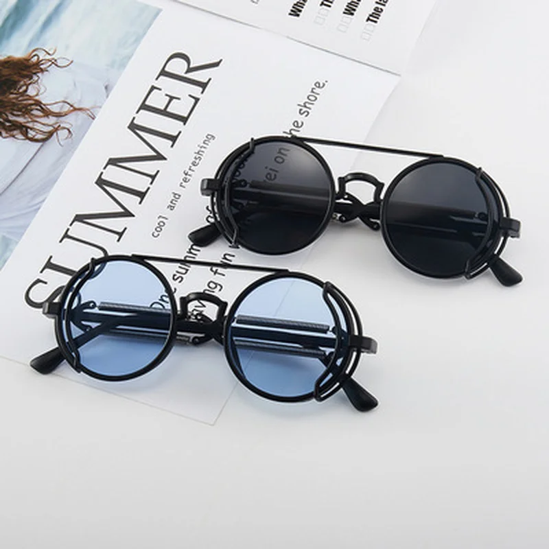Солнцезащитные очки в стиле панк для мужчин и женщин UV400, брендовые дизайнерские круглые солнечные очки в готическом стиле, ретро