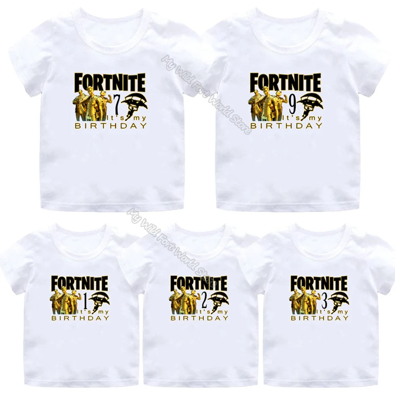Детские футболки на день рождения, рубашка для мальчиков Fortnites, рубашка для игры в Fortnight, белые футболки с коротким рукавом, летние топы, детская модная одежда в подарок