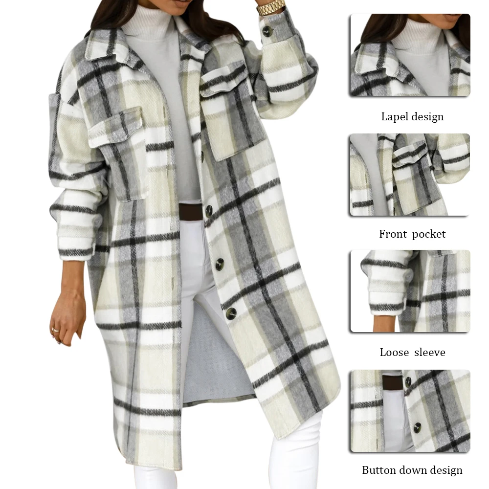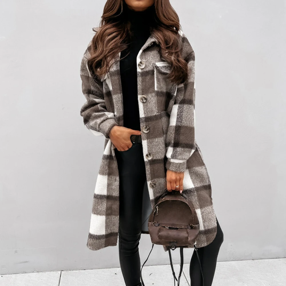 2021 Women's Autumn Winter CoatsPlaid Clothes Long Blouses Coat