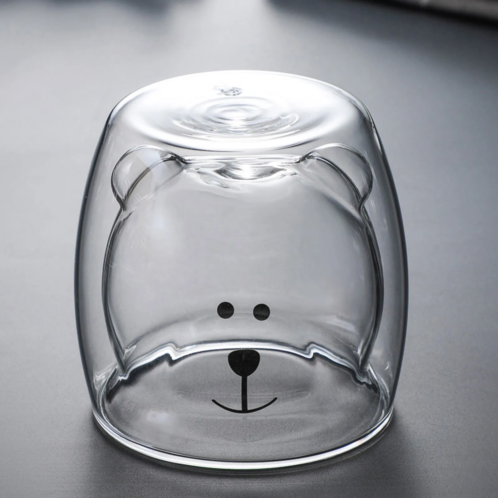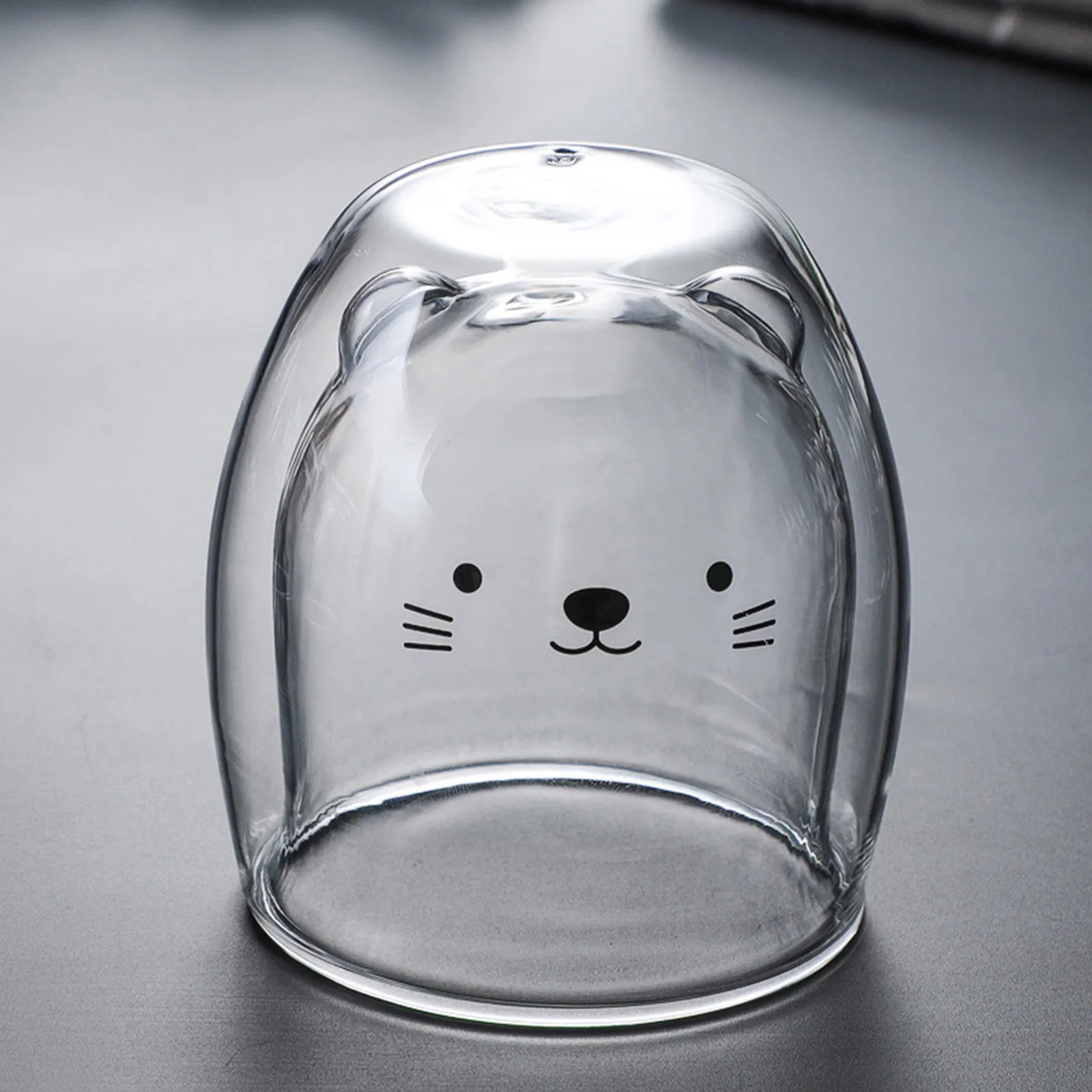 Красивые стеклянные кружки медведь кошка собака животное двухслойная чашка для чая молока кофе с круглым ртом предотвращает ожоги мультяшный Рождественский подарок