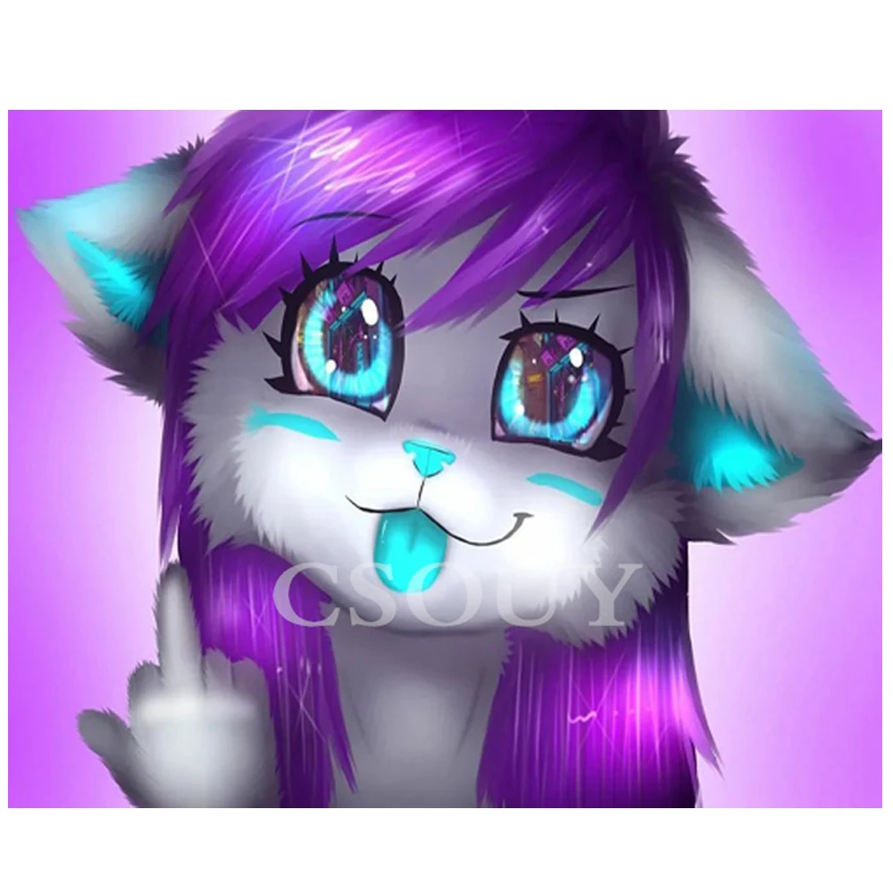 5D алмазная живопись сделай сам, вышивка крестиком, животное, кот, мультфильм, ангел, полноразмернаякруглая Алмазная вышивка, домашний декор, мозаика, рукоделие