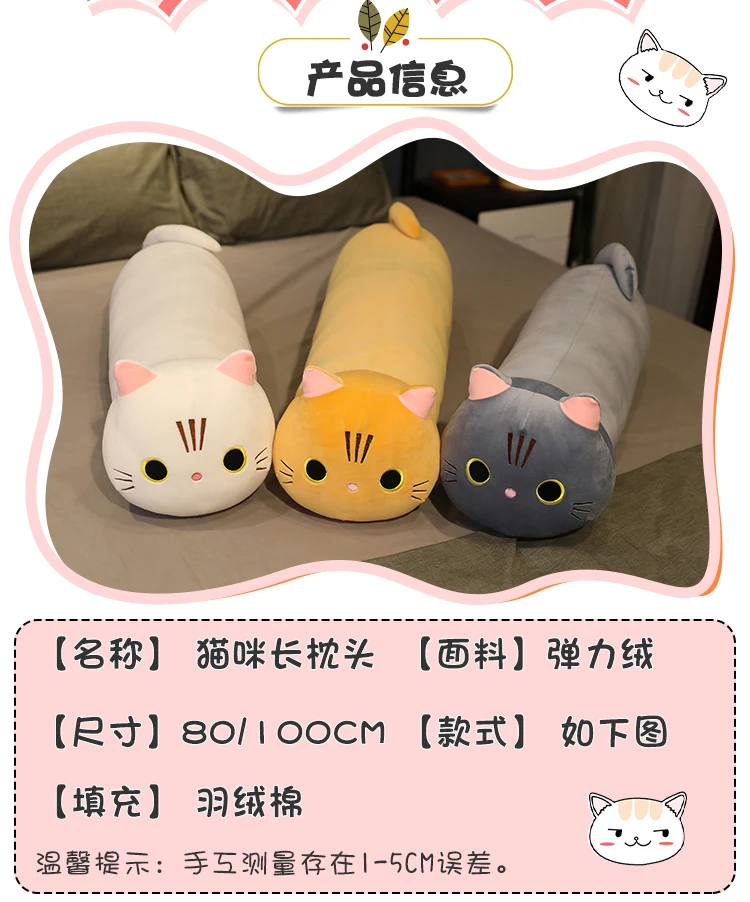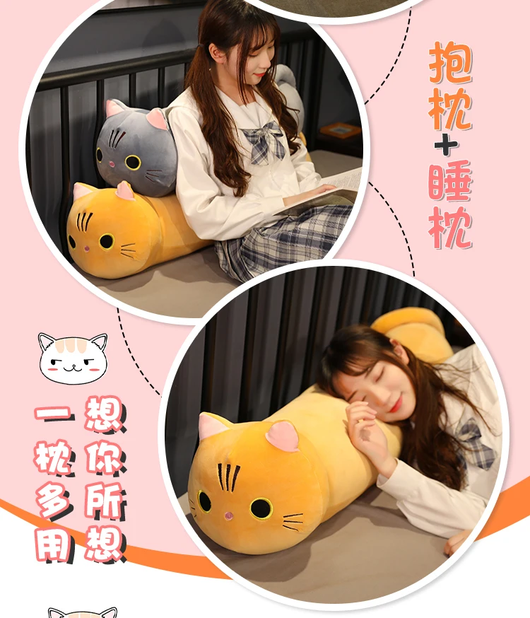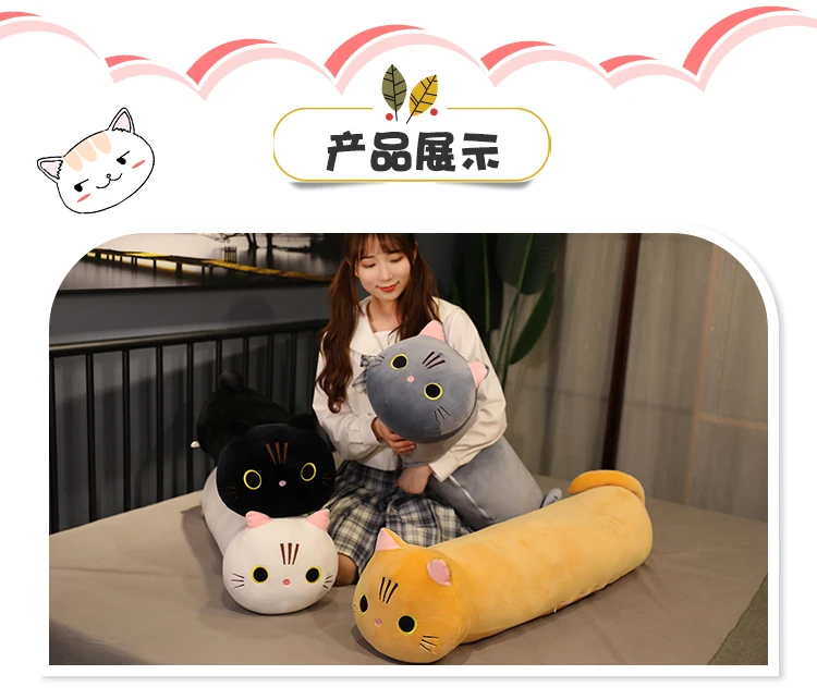 Kawaii, длинный плюшевый Кот, плюшевая подушка, плюшевые животные, подарки для девочек, игрушка для детей, домашний декор
