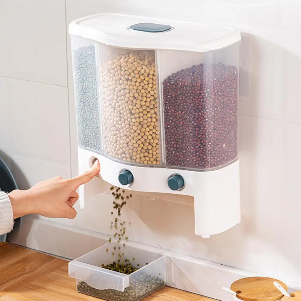 Настенный кухонный дозатор для риса, отдельные сетки, влагостойкий ПП контейнер для хранения свежести и зерна, кухонные принадлежности
