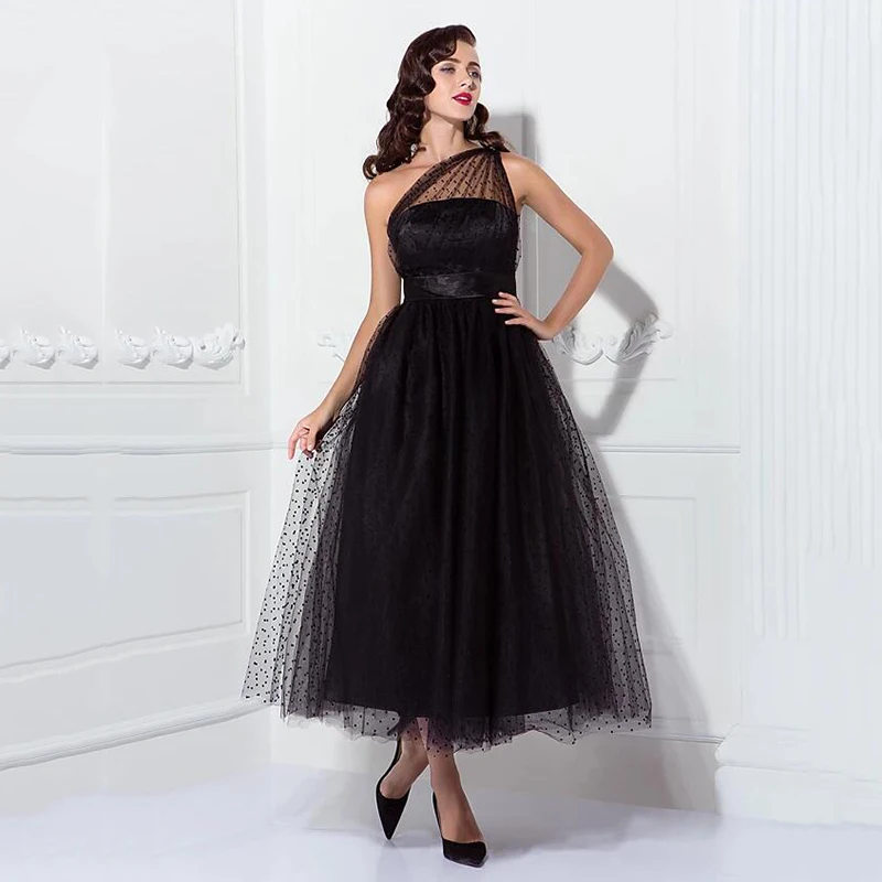 Платье женское ТРАПЕЦИЕВИДНОЕ на одно плечо, из тюля, до щиколотки