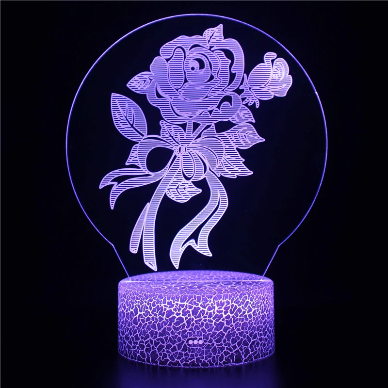 Лампа с акриловой пластиной и цветами, 7 цветов, USB