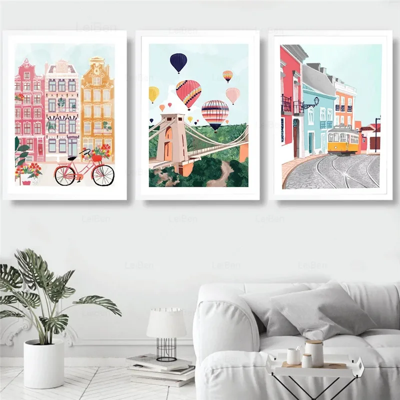 Аниме путешествия город пейзаж постер марокканский Париж декоративн...