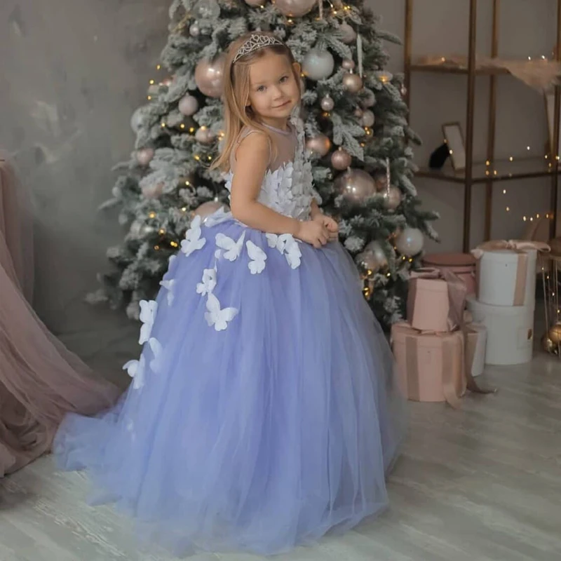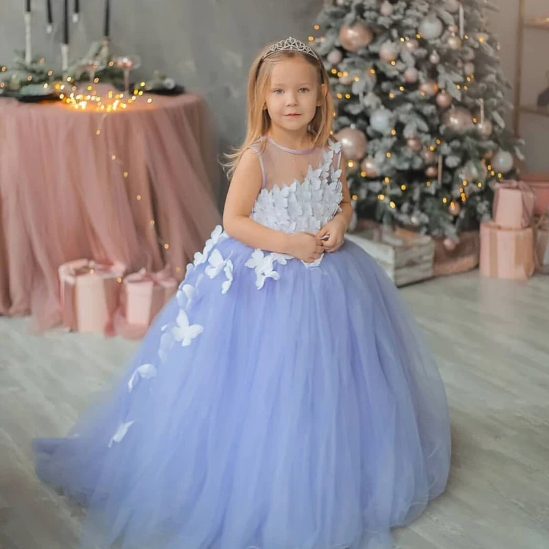 Светильник-голубое Тюлевое платье с цветочным принтом для девочек, Бабочка, для младенцев, пышная бабочка, детская принцесса, вечерние дня рождения