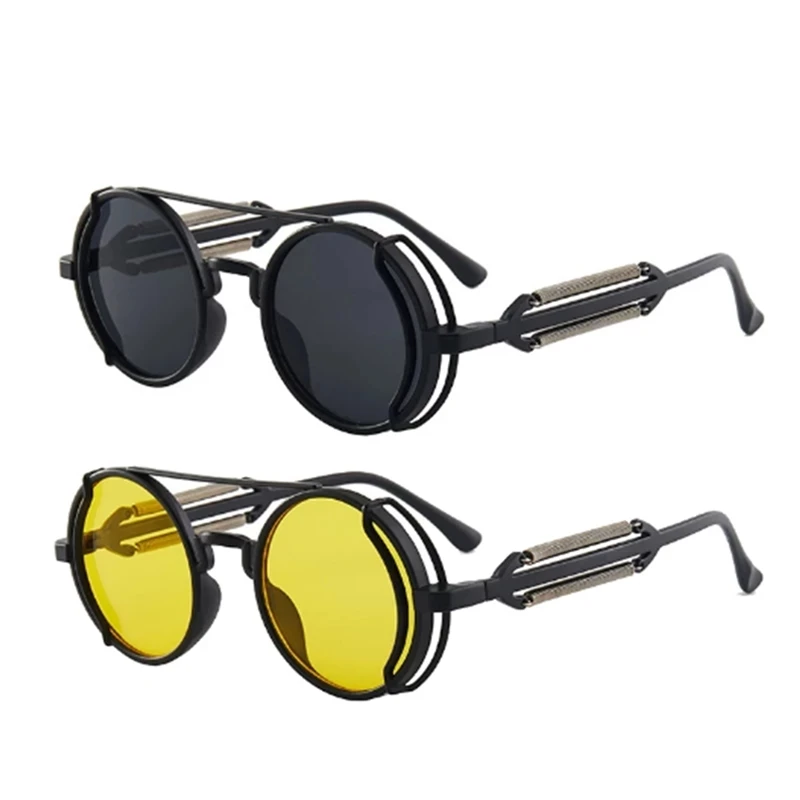 Солнцезащитные очки в стиле панк, стимпанк, очки с двойной пружиной, модные трендовые круглые солнцезащитные очки, мужские брендовые Дизайнерские товары в готическом стиле