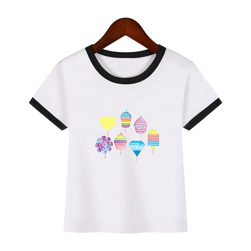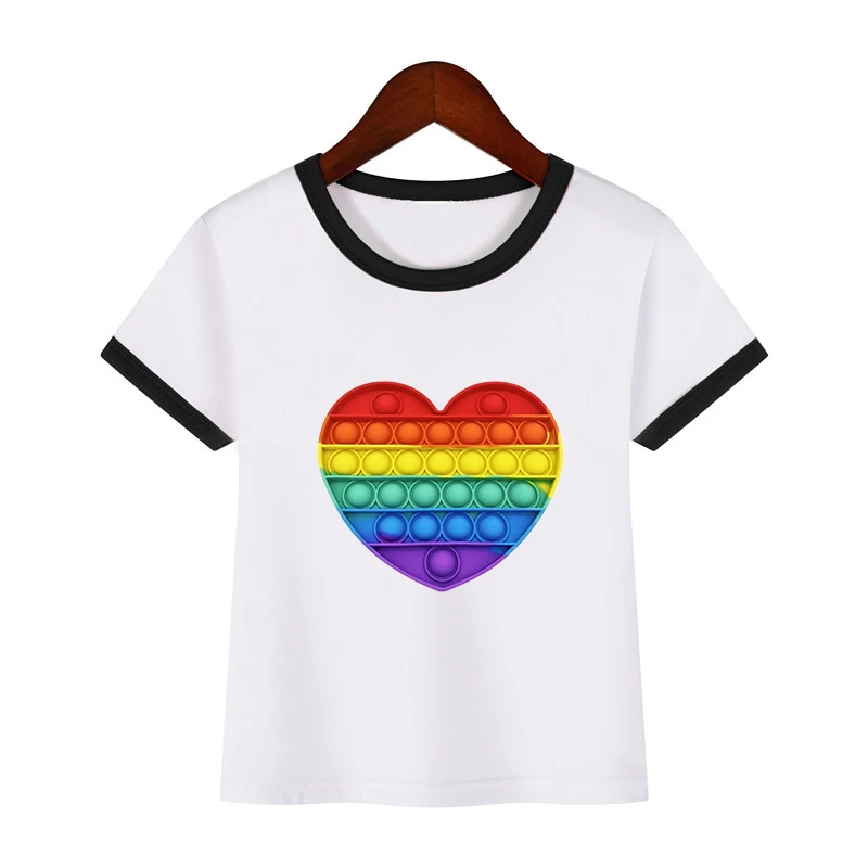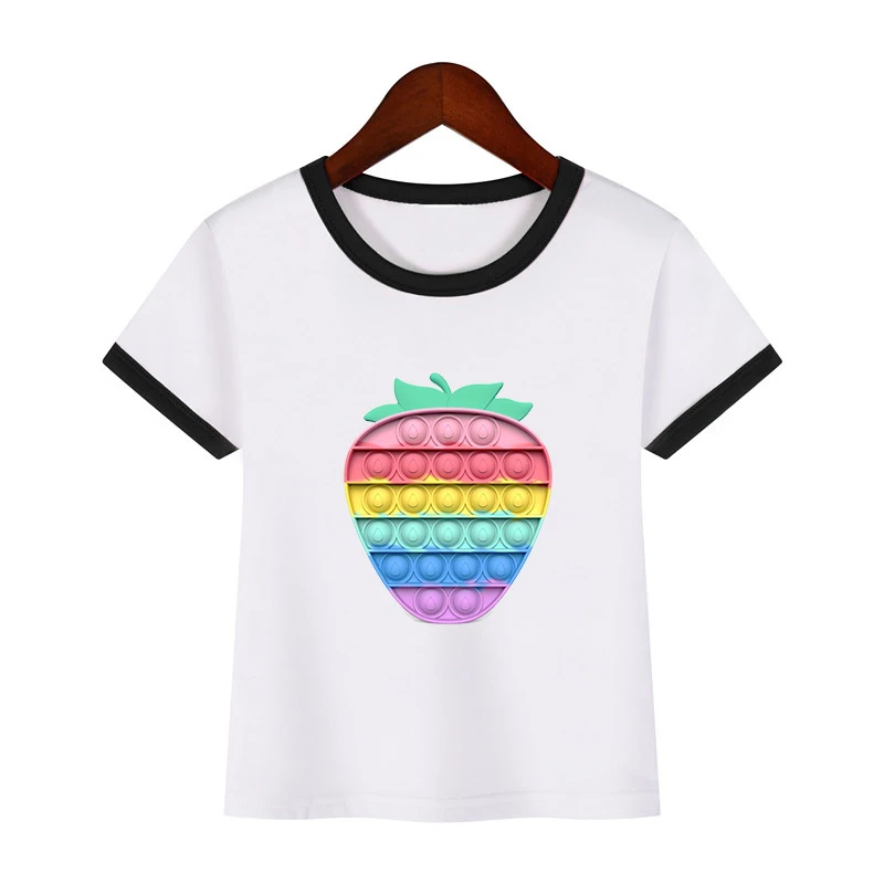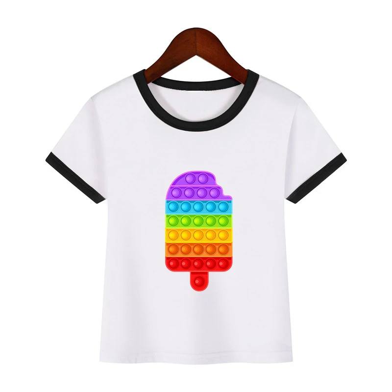 2021 Футболка с принтом POP It, Детская уличная одежда, радужная футболка с коротким рукавом, Детские забавные игры, футболки в стиле Харадзюку